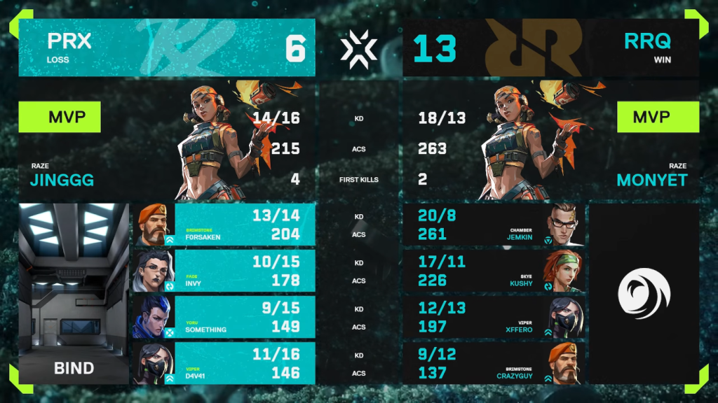 ▲RRQ対PRX 1stマップ エージェントピック(本配信より引用)