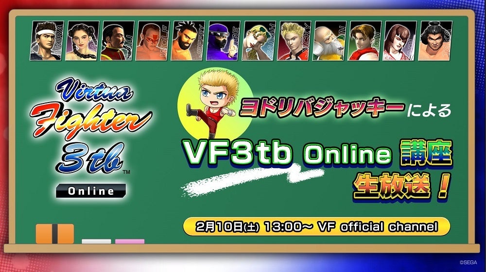 シリーズ中、最も異色といわれる「VF3tb」とは何なのか。アーケード版の稼働当時から今もなお現役のプレイヤー「ヨドリバジャッキー」が説く、『Virtua Fighter 3tb Online』講座を生配信でお届けいたします。「VF3tb」のゲームシステムやキャラクター攻略を対戦も交えながら徹底解説いたしますので、ぜひご視聴ください。