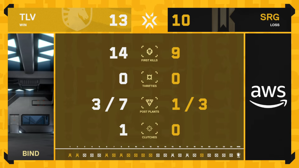 ▲SRG対TLV 1stマップ 試合リザルト(動画より引用)
