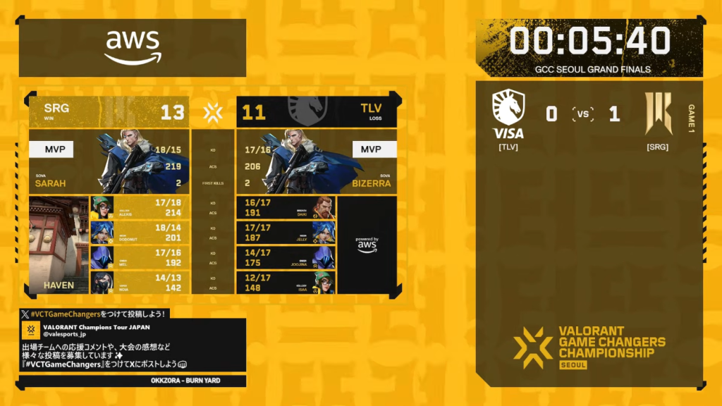 本稿では、「VALORANT Game Changers Championship 2025|DAY10(Grand Final)の試合結果をお届けします。