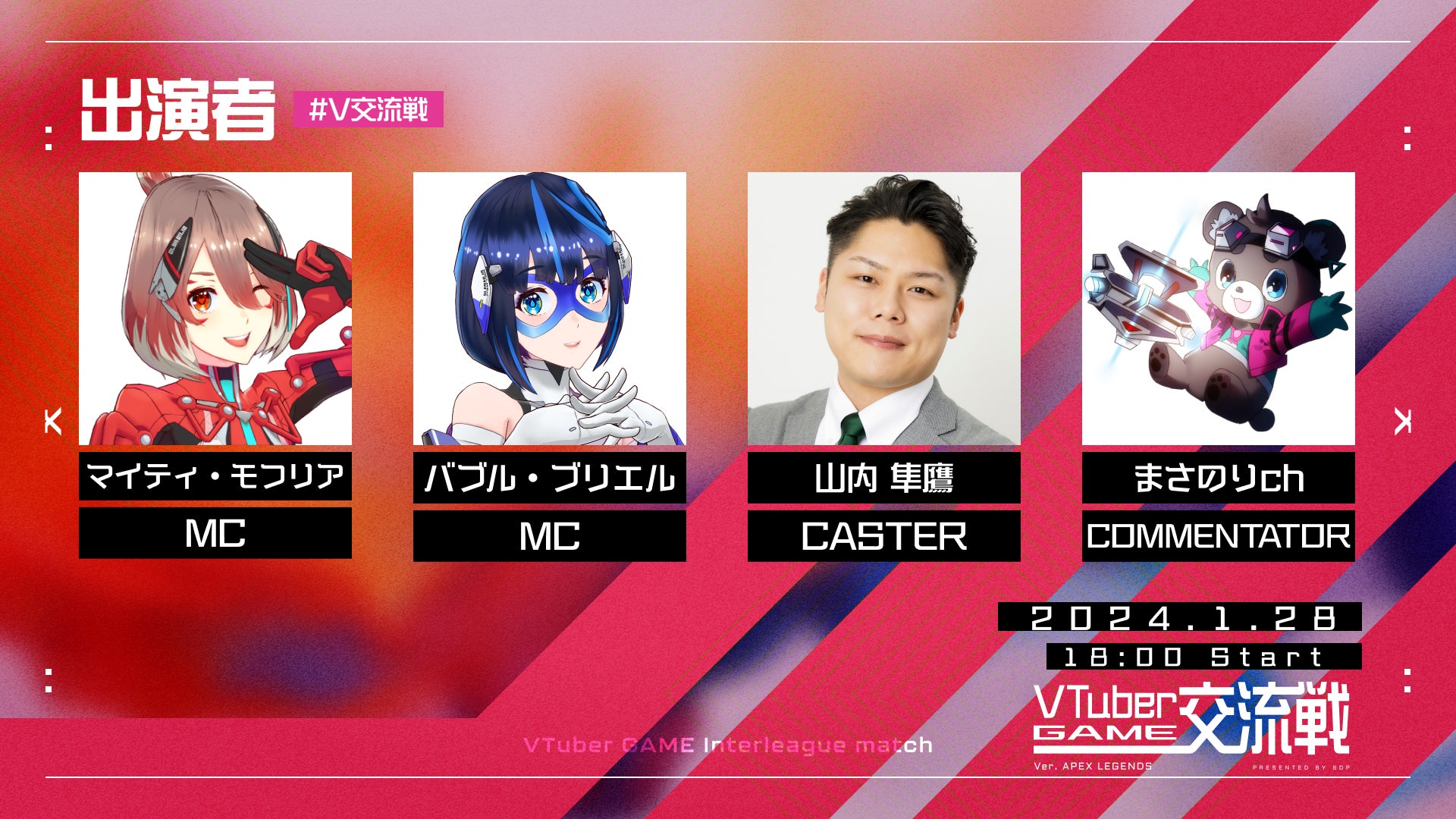 株式会社集英社DeNAプロジェクツ(以下 集英社DeNAプロジェクツ)は2024年1月28日(日)に、『事務所対抗 VTuberゲーム交流戦 Ver. Apex Legends』(以下 V交流戦)を開催することをお知らせします。