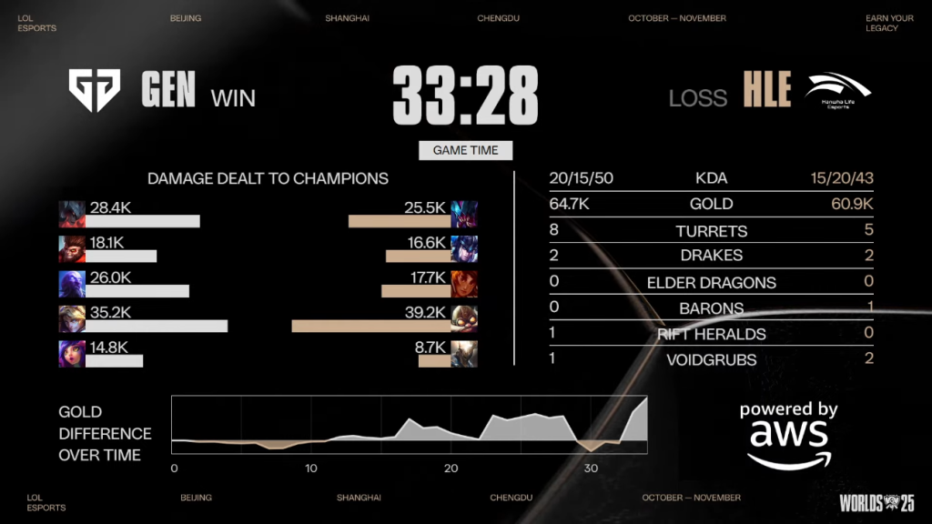 本稿では、10月28日に行われたWorlds 2025 ノックアウトステージ Hanwha Life Esports vs Gen.Gの試合結果をお届けします。