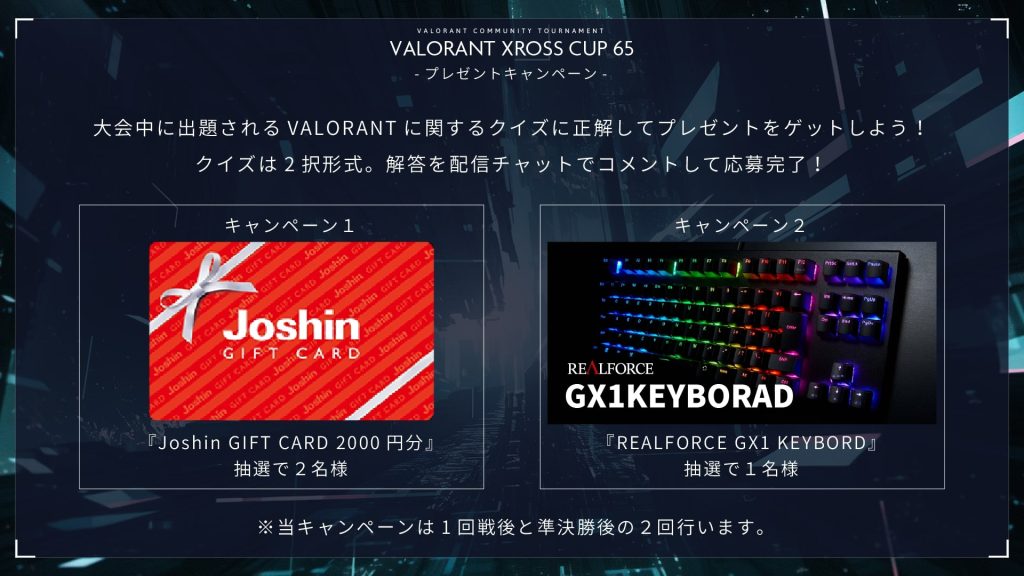 【イベント情報】X DIVISIONが主催するコミュニティ大会「VALORANT Xross Cup 65」11月29日に開催決定!Joshinギフトカードや『REALFORCE GX1 KEYBOARD』が貰えるプレゼントキャンペーンも実施予定