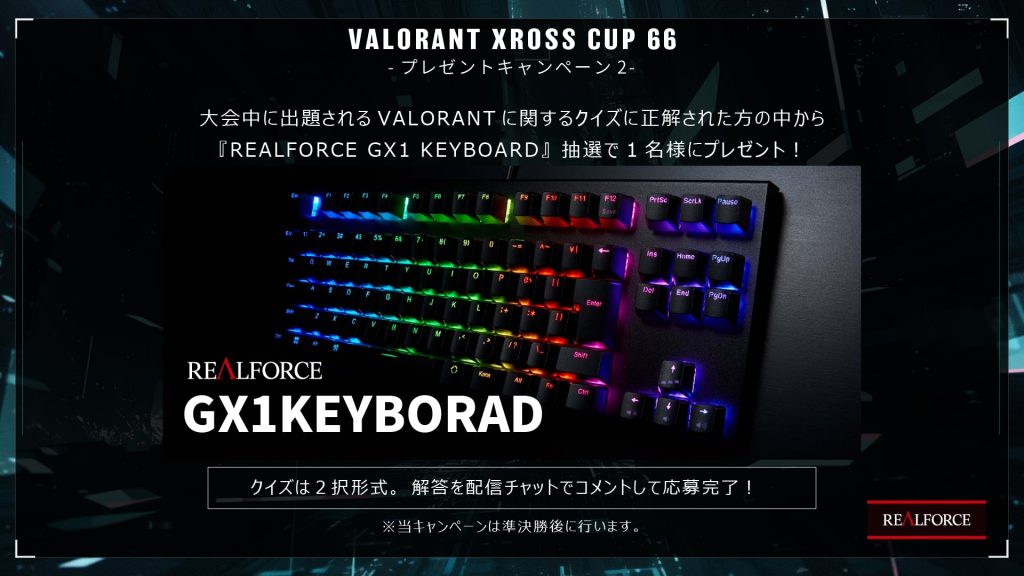 【イベント情報】X DIVISIONが主催する年内最後のコミュニティ大会「VALORANT Xross Cup 66」12月28日に開催!Joshinギフトカードや『REALFORCE GX1 KEYBOARD』が貰えるプレゼントキャンペーンも実施